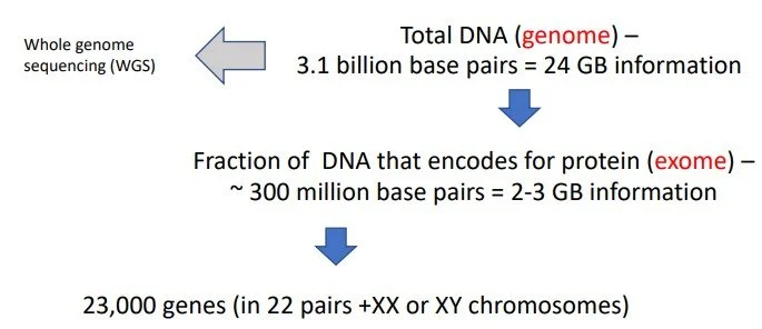 ”The DNA molecules that constitute our genetic code look like a twisted ladder (the formal name is a “double helix”), and the amount of DNA in one human cell (the genome) would be about two yards long when stretched out. Yet, all of it is contained in a nucleus that is about two ten-thousandths of an inch across.”